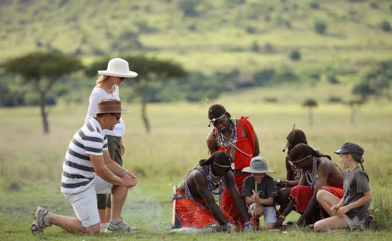 Activities: Private airport and road transfer • Maasai village visit & cultural immersion • Safari orientation & briefing • Lodge check-in • Sundowner experience